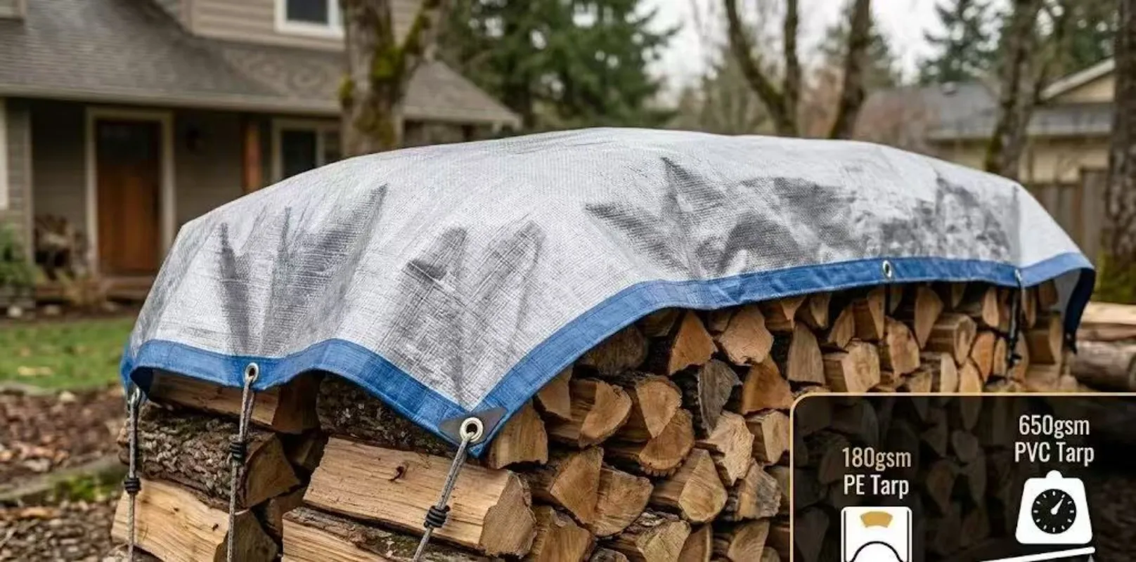 - The Winner: PE Tarpaulin. Our 180gsm heavy-duty PE tarp is perfect here. It’s light enough for one guy to throw over a woodpile, 100% waterproof, and cheap enough that you won't cry if you accidentally spill paint on it. Client Mark from Ohio bought our PE tarp to cover his hay bales. He told us: "It kept the hay bone-dry all winter, and I didn't break my back putting it on."