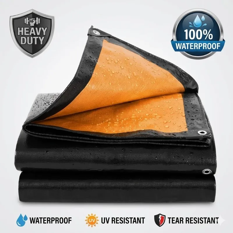 Engineered for maximum durability and extreme weather protection, our Heavy Duty Black/Orange Reversible Tarpaulin is the ultimate solution for your covering needs. Whether you are securing cargo on a truck, protecting construction materials, or looking for a reliable sunshade, this premium tarp delivers uncompromising performance. The dual-color design offers versatility: use the orange side for high visibility and sun reflection, and the black side for heat absorption and concealing items.
