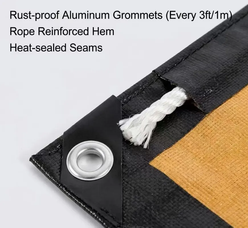🔗 Reinforced Edges & Grommets: Features built-in rust-proof aluminum grommets evenly spaced (every 1m / 3ft) along all edges, with a heavy-duty rope reinforced hem for secure, reliable tie-downs.